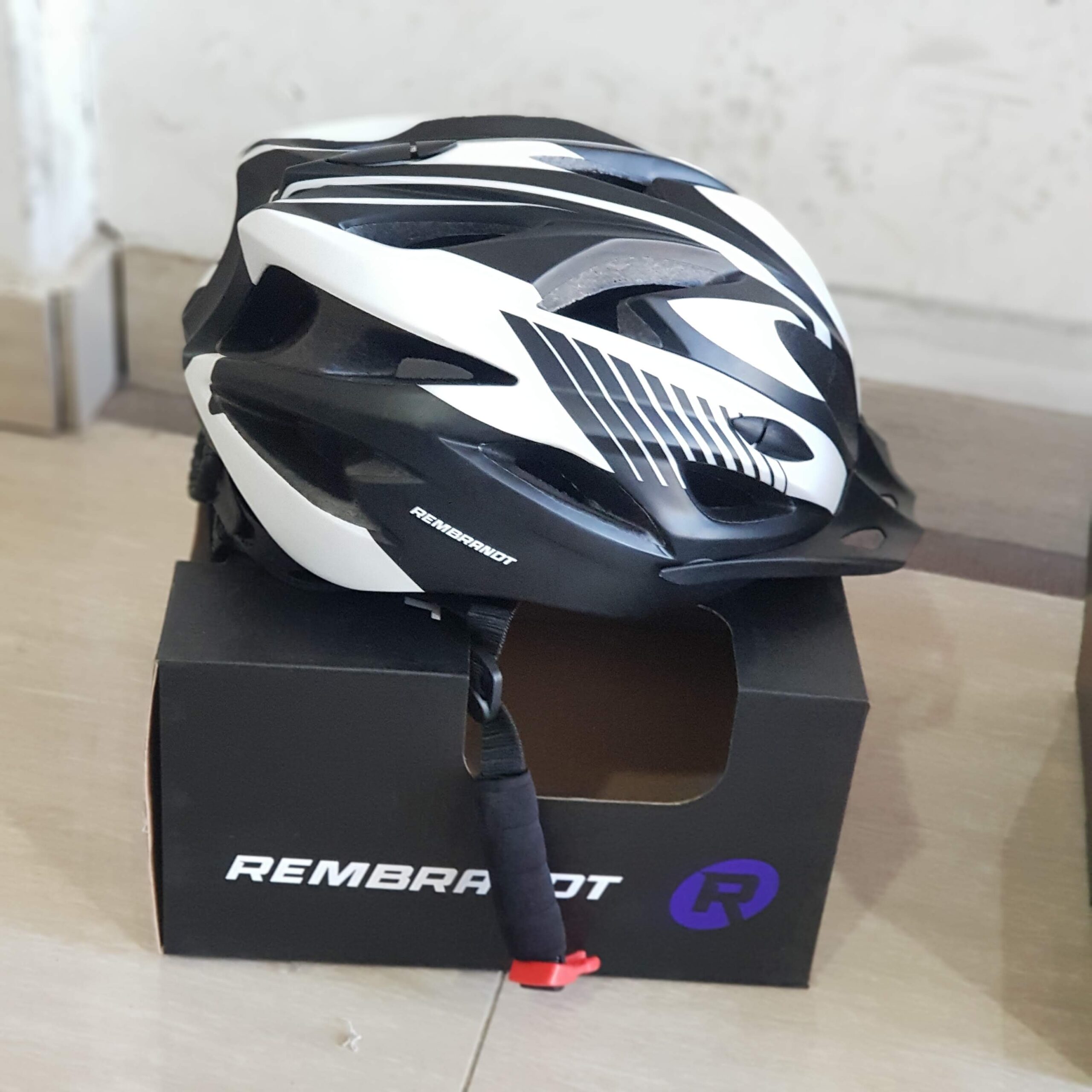 Combina estilo, ligereza y seguridad con este casco de ciclismo REMBRANDT en un llamativo diseño bicolor blanco y negro. Ideal para ciclistas de ruta y montaña, presenta una carcasa de construcción resistente que envuelve la espuma de absorción de impactos (In-Mold, usualmente). El patrón gráfico dinámico en negro contrasta con la base blanca. Ofrece una excelente ventilación gracias a sus múltiples canales y tomas de aire. Cuenta con un sistema de retención ajustable en la parte trasera para un calce preciso y una correa con clip de seguridad para una sujeción rápida y fiable.